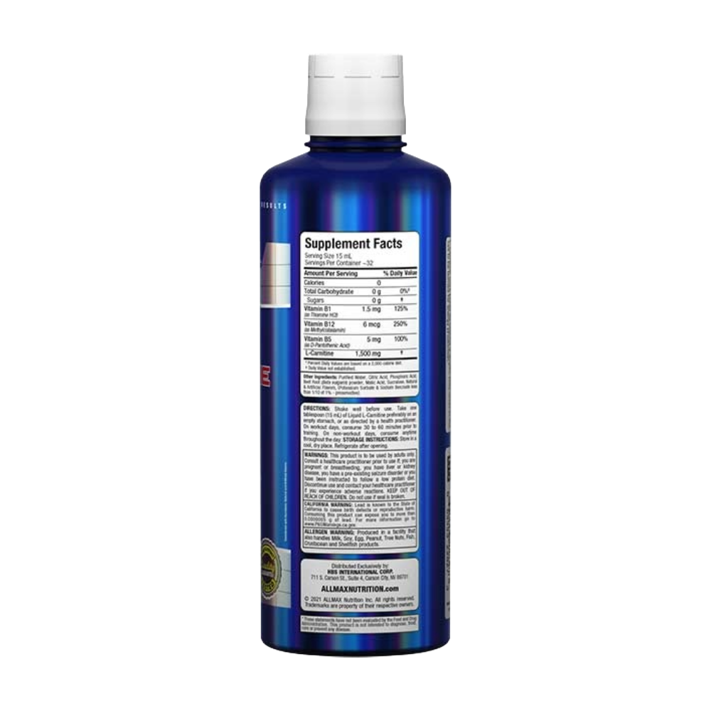 Boost your energy, endurance, and performance with ALLMAX Liquid L-Carnitine 1500. This delicious and easy-to-take liquid formula delivers a potent 1500mg of L-Carnitine in every serving to help convert fat into energy. Fortified with essential B-Vitamins, this professional-grade supplement helps you recover faster after intense training and improves your overall exercise capacity.