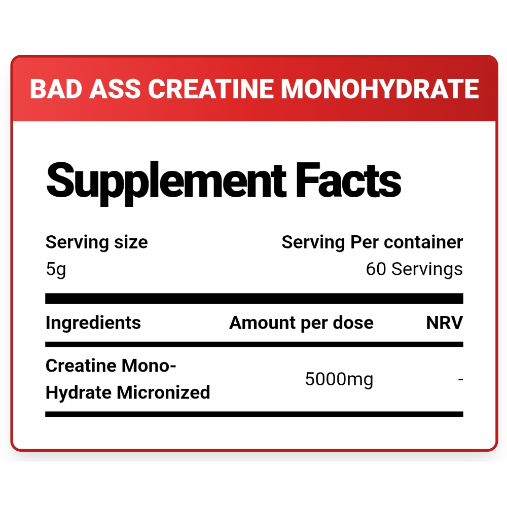 Unleash your inner beast with BAD ASS® Creatine Monohydrate. This is not for the faint of heart. Formulated for the most dedicated athletes, this supplement delivers pure, micronized creatine monohydrate to fuel your muscles for explosive strength, power, and size. If you’re ready to dominate your workouts and build a formidable physique, this is your foundational tool.