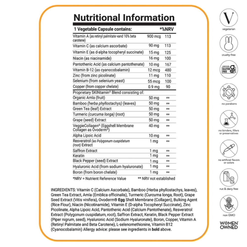 - 22 Skin-Loving Ingredients: A proprietary blend of vitamins, minerals, and herbal extracts like Organic Amla, Bamboo, and VeggieCollagen® from eggshell membrane.