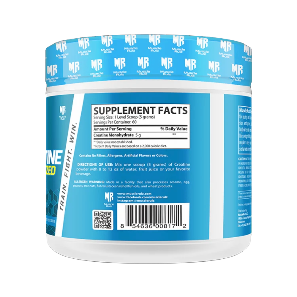 MuscleRulz Creatine Micronized has been rigorously tested for purity and is scientifically proven to boost strength, size, and power. It’s the perfect supplement for high-intensity and short-duration training exercises like weightlifting, helping you get that extra edge. With regular use, you’ll notice greater stamina and sustained strength with every set and rep.