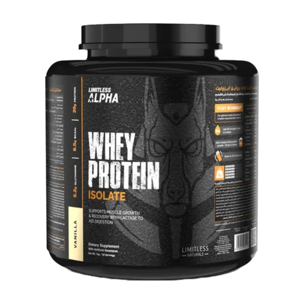 Unleash your alpha potential with Limitless Alpha Whey Protein Isolate. This premium dietary supplement is scientifically formulated to support muscle growth and accelerate recovery. Each serving delivers a massive 30g of pure whey protein isolate, packed with BCAAs and Glutamine. For enhanced comfort, it includes the digestive enzyme Lactase to aid in digestion, making it a superior choice for post-workout nutrition.