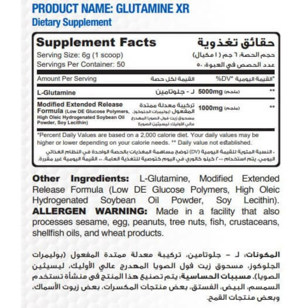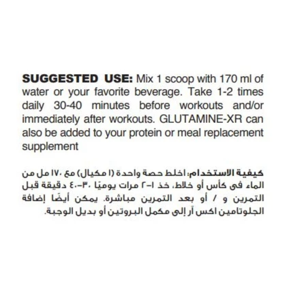 Mix 1 scoop (6g) with 170 ml of water or your favorite beverage. Take 1-2 times daily, 30-40 minutes before workouts and/or immediately after. Glutamine-XR can also be added to your protein or meal replacement supplement.