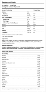 Whey Protein Isolate, Cocoa (Processed with Alkali), Natural and Artificial Flavors, Salt, Soy and/or Sunflower Lecithin, Gum Blend (Cellulose Gum, Xanthan Gum, Carrageenan), Sucralose.