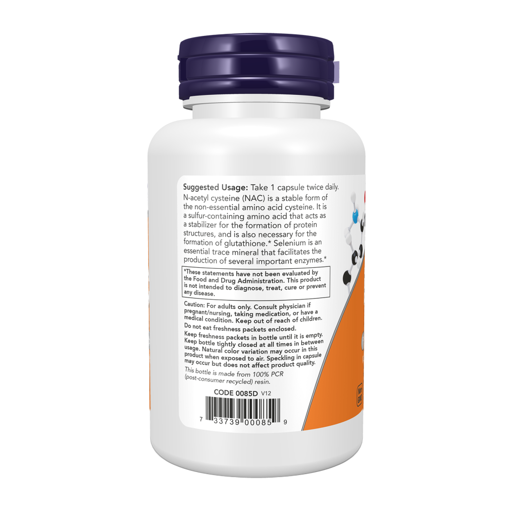 Support your body’s defense system with NOW NAC (N-Acetyl Cysteine) 600 mg. NAC is a stable form of the non-essential amino acid cysteine and serves as a powerful antioxidant for free radical protection. It acts as a stabilizer for the formation of protein structures and is essential for the formation of glutathione. This formula is enhanced with Selenium, a trace mineral that facilitates the production of several important enzymes, helping to maintain overall cellular health.