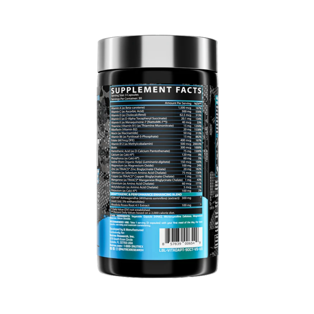 Your journey to greatness begins with nurturing your overall health. VITADAPT COMPLETE by Nutrex Research is an advanced, all-in-one premium sports multivitamin designed to help active people combat stress and achieve optimized nutrition. This formula goes beyond a standard multi by including powerful adaptogens like KSM-66® to help safeguard the body from stress while enhancing overall strength, recovery, and performance.