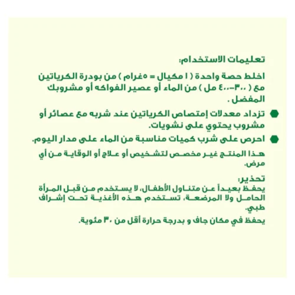 - Mix: Mix one serving (1 level scoop = 5g) of creatine powder with 300-400 ml of water, fruit juice, or your favorite beverage.