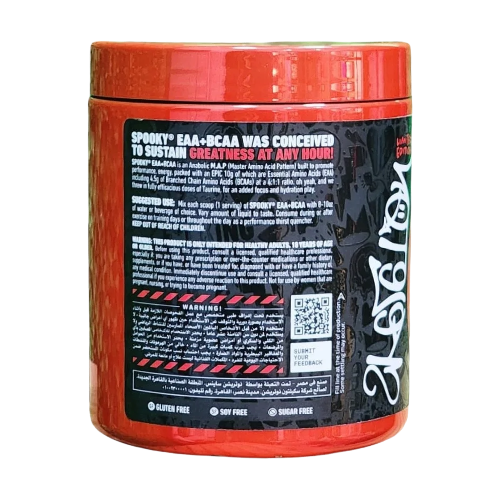 SPOOKY® EAA+BCAA was conceived to sustain greatness at any hour! This limited edition, anabolic M.A.P (Master Amino Acid Pattern) is built to provide everything your body needs to grow. Each serving is loaded with a full spectrum of Essential Amino Acids (EAAs), a potent 4:1:1 ratio of Branched-Chain Amino Acids (BCAAs), and a SPOOKY® Hydration blend. It’s a gluten-free, soy-free, and sugar-free formula for the ultimate performance.