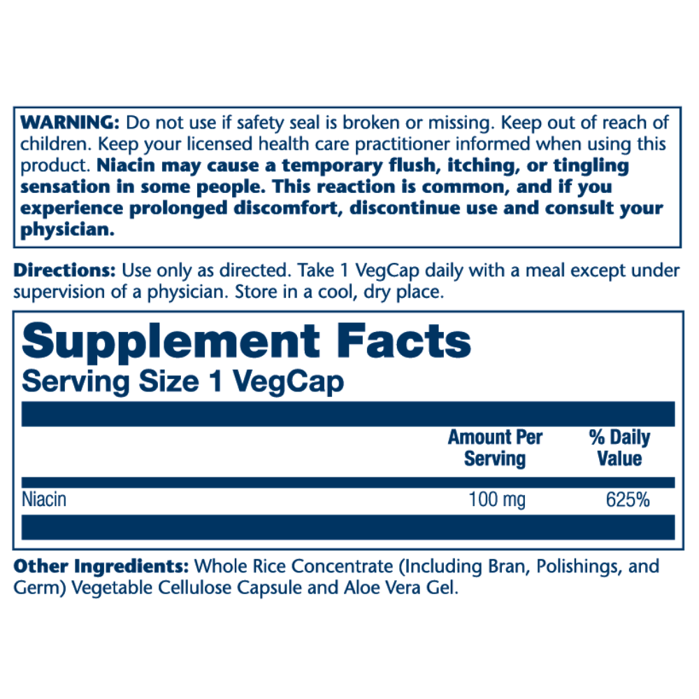 - Potent Dose: Delivers 100 mg of Niacin in a single vegetarian capsule.