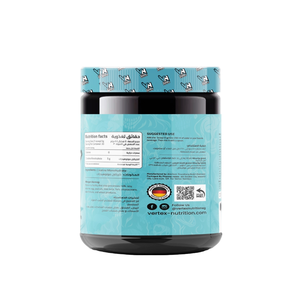Elevate your athletic performance with Vertex Nutrition’s CREA-V. This premium supplement is powered by German-made Creapure®, the most widely studied form of creatine, renowned for its purity and effectiveness. CREA-V is designed for serious athletes looking to enhance strength, improve recovery, and increase endurance.