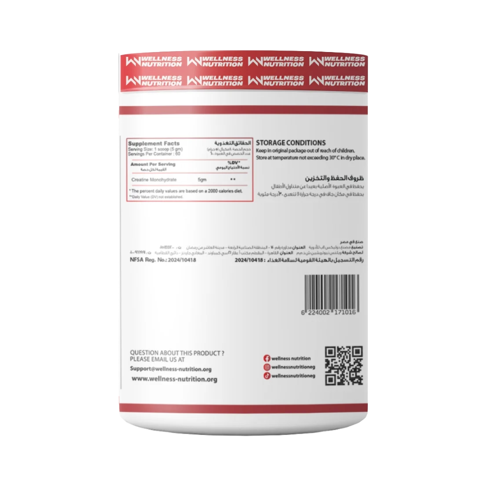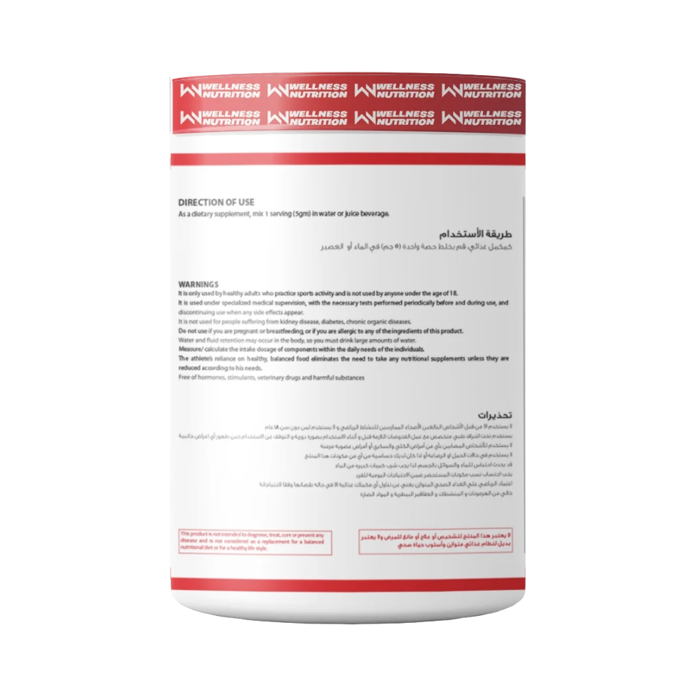 Elevate your training with Wellness Nutrition’s Creatine Monohydrate. This pure dietary supplement is designed to help you achieve your strength and muscle-building goals. Creatine is a scientifically proven ingredient that helps improve muscle strength, aids in muscle recovery, and supports overall muscle growth, making it an essential staple for any serious athlete.