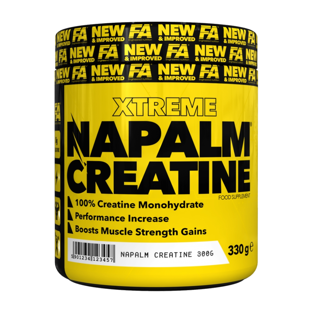 Ignite your workouts with FA Xtreme Napalm Creatine. This is a pure, 100% creatine monohydrate food supplement designed for athletes looking to increase performance and boost muscle strength gains. Each serving provides a full 5g dose of high-quality creatine monohydrate to fuel your muscles during high-intensity exercise.