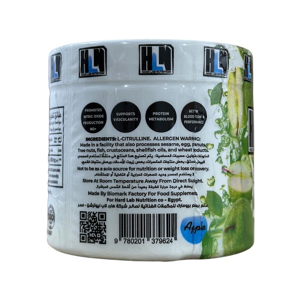 Supercharge your workouts with Hard Lab Nutrition’s (HLN) Citrulline Malate. This premium dietary supplement is the ultimate tool for athletes looking to boost nitric oxide levels, enhance performance, and support muscular detoxification. Each serving delivers a potent dose of pure L-Citrulline to promote better blood flow, vascularity, and protein metabolism.