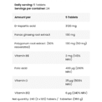 – Panax ginseng root extract: 100 mg