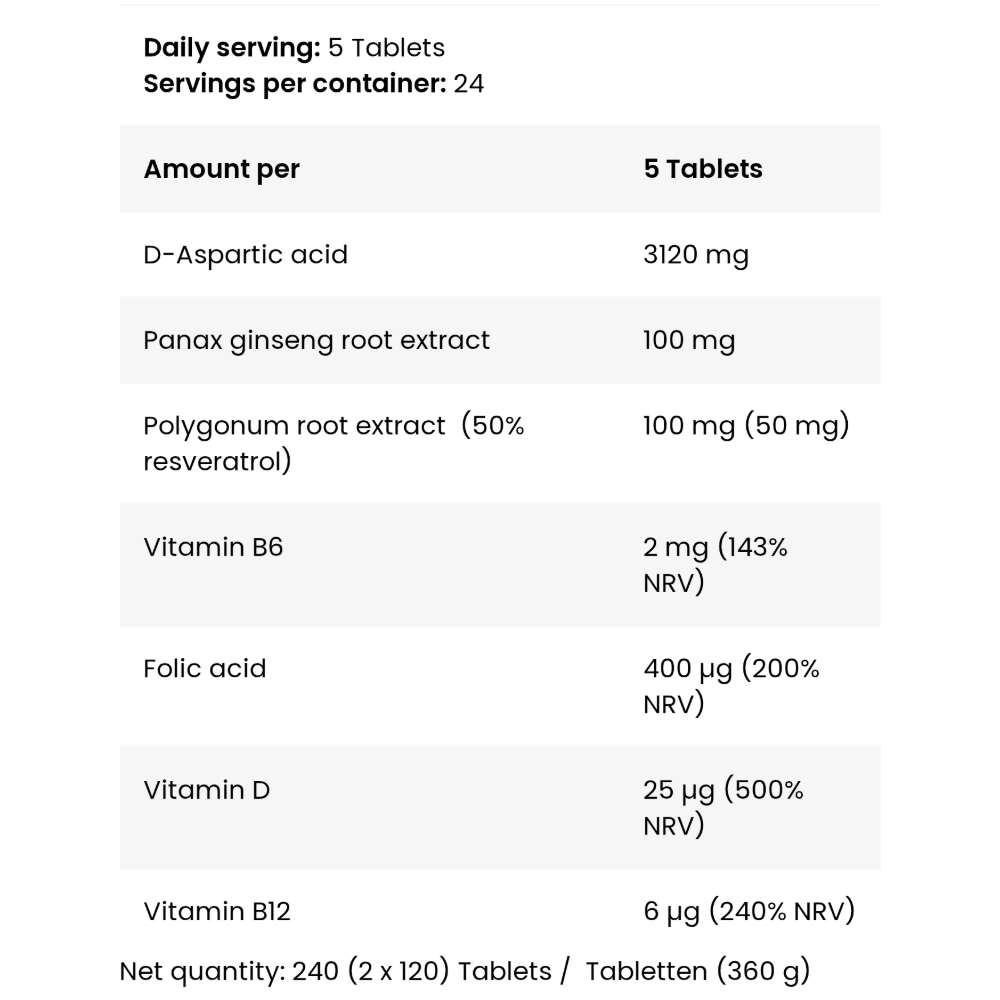 – D-aspartic acid: 3120 mg