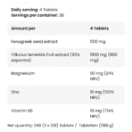 – Tribulus terrestris fruit extract (90% saponins): 1000 mg