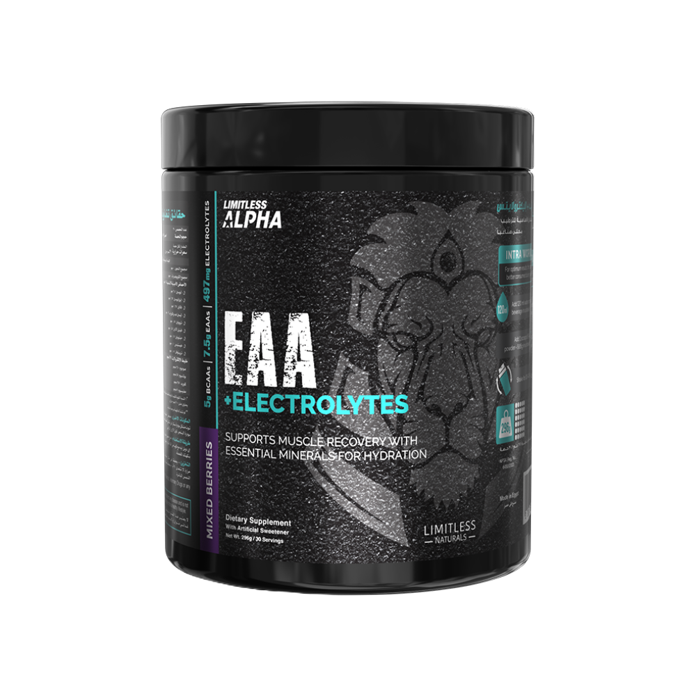 Unleash your potential with Limitless Alpha EAA + Electrolytes. This advanced formula is designed to support muscle recovery and provide essential minerals for optimal hydration. With a powerful blend of 7.5g of Essential Amino Acids (EAAs), including 5g of BCAAs, and a robust electrolyte complex, this supplement is your key to enhanced performance and recovery.