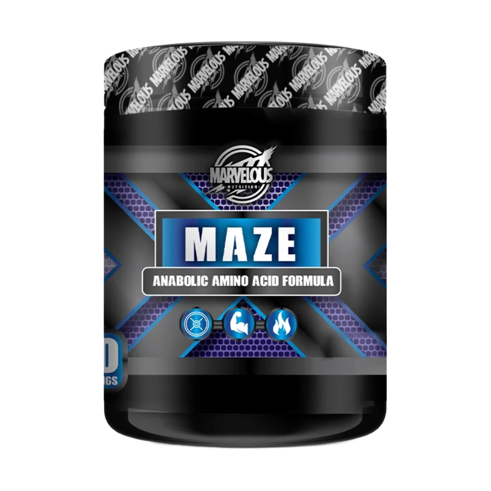 Navigate the path to superior muscle growth with Marvelous Nutrition’s MAZE, a powerful anabolic amino acid formula. This advanced supplement is engineered with three distinct matrices to provide comprehensive support for your training. It combines a potent dose of BCAAs and EAAs, a marvelous blend of recovery agents, and essential electrolytes and vitamins to fuel performance, enhance recovery, and support an anabolic environment.