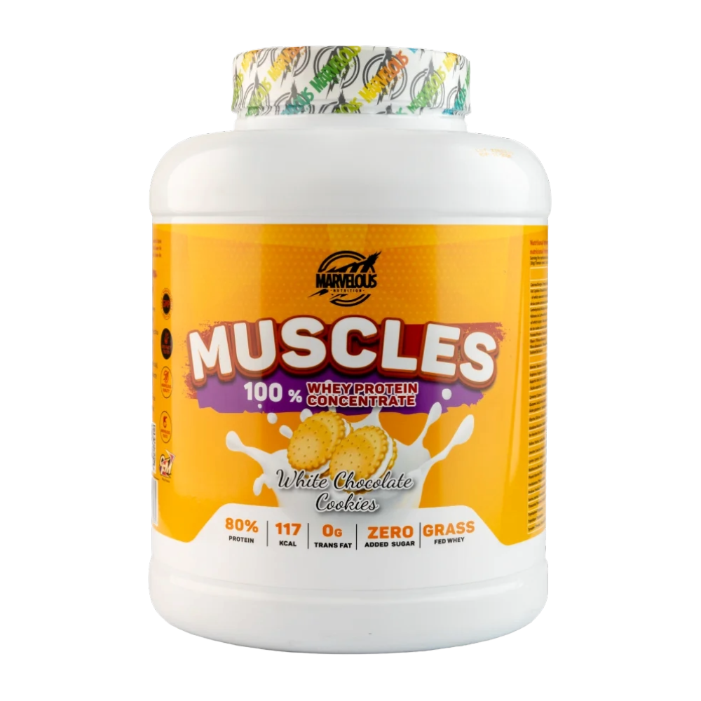 Build marvelous muscle with Marvelous Nutrition’s MUSCLES, a premium 100% Whey Protein Concentrate. This formula is engineered with high-quality, grass-fed whey, delivering 80% protein to fuel your muscle growth and recovery. To ensure optimal absorption, it’s enhanced with DigeZyme®, a multi-enzyme complex. With zero added sugar and zero trans fat, it’s the clean, effective choice for achieving your physique goals.