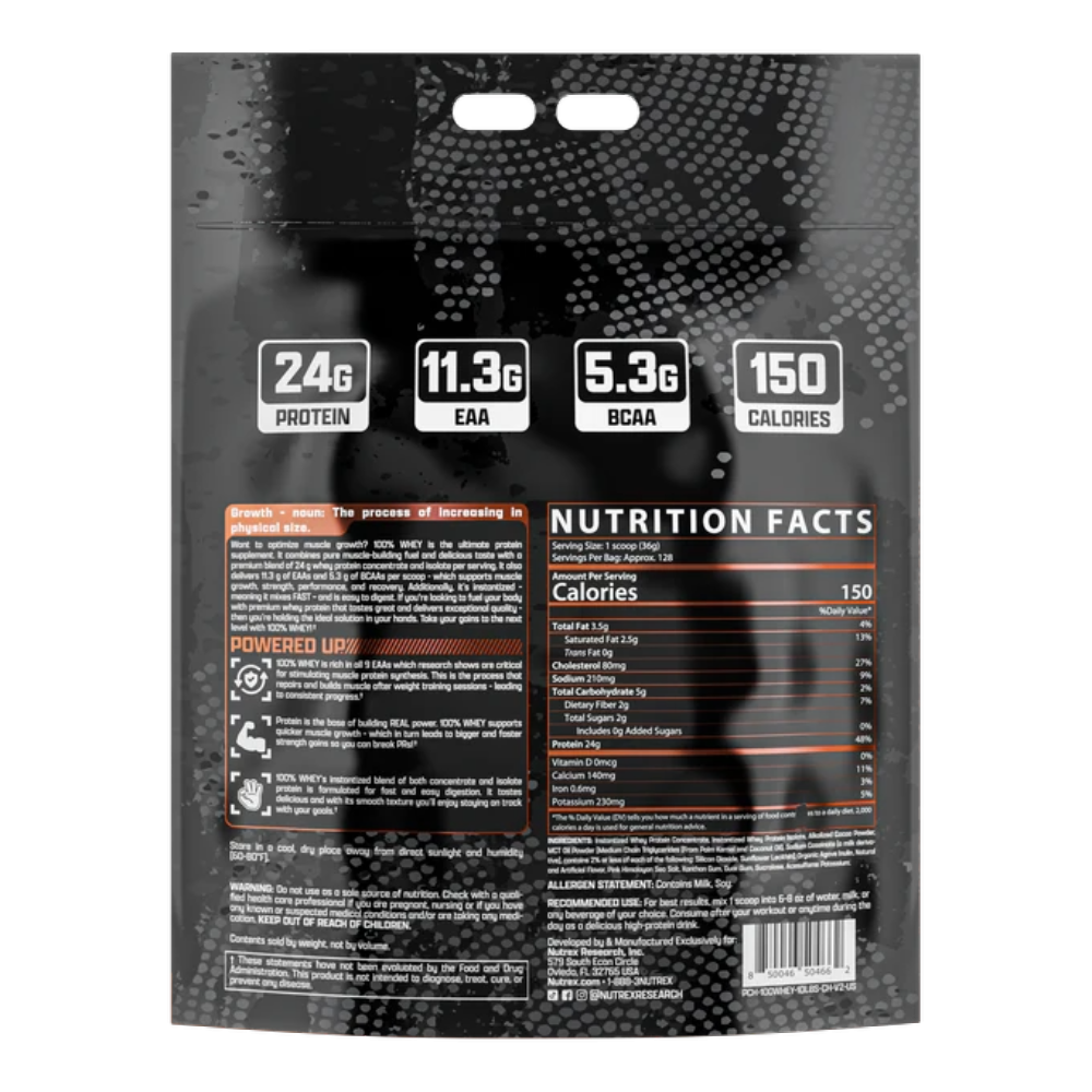 Power up your growth with Nutrex Research 100% Whey Protein. This formula combines pure muscle-building fuel with a delicious taste to create the ultimate protein shake. It features an advanced blend of both whey protein concentrate and isolate, delivering 24g of high-quality protein per scoop. Packed with 11.3g of EAAs and 5.3g of BCAAs, it’s engineered to support faster muscle growth, improve recovery, and fuel your body for bigger and better gains.