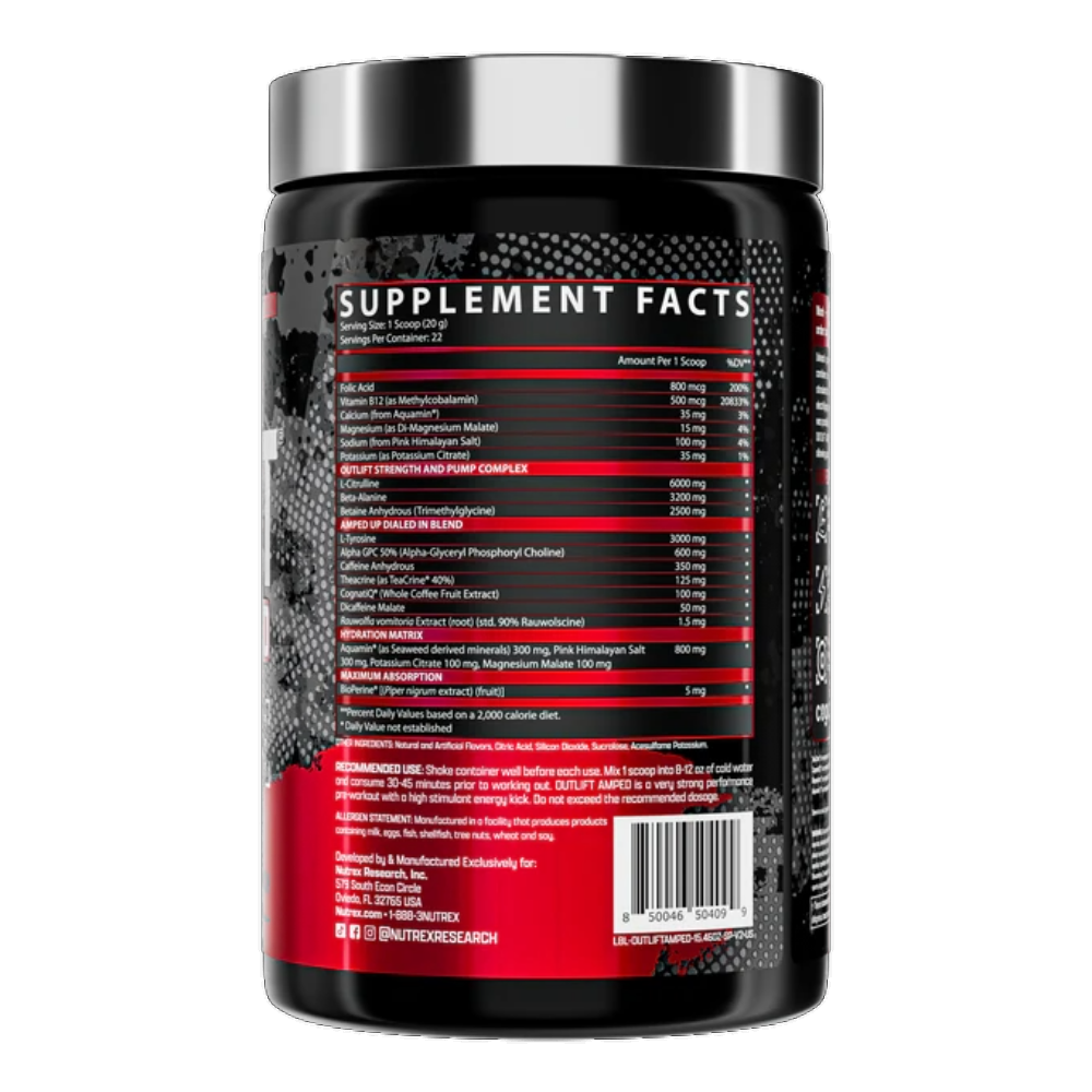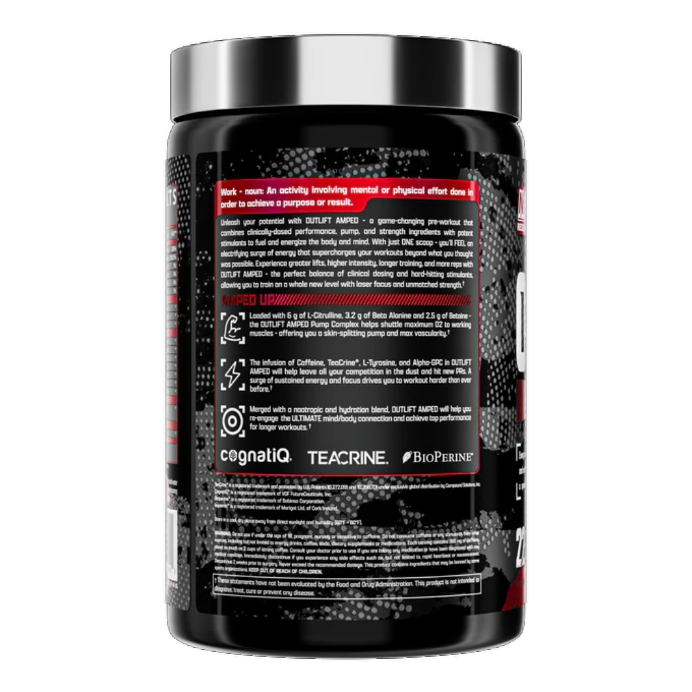 Unleash your true potential with OUTLIFT AMPED by Nutrex Research, the game-changing, high-stimulant pre-workout that’s clinically dosed for real results. We designed OUTLIFT AMPED for the serious athlete who demands intense, sustained energy and laser focus. With just one scoop, you’ll feel an electrifying surge of energy that supercharges your workouts, letting you achieve greater lifts, higher intensity, and more reps than ever before.