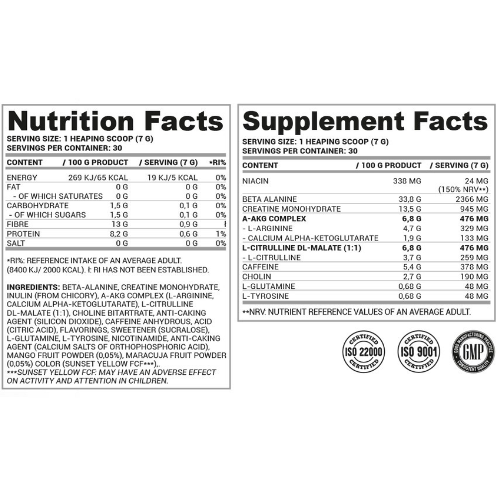 Nutriversum PWO 2.0 is a complex pre-workout formula designed to give you the extra motivation you need. Packed with Caffeine, Creatine, A-AKG, amino acids, Beta-Alanine, and Niacin, it’s engineered to help you power through even the most challenging training sessions. With an exceptionally high caffeine content, it guarantees the focus you need to shut out the world and conquer your goals.