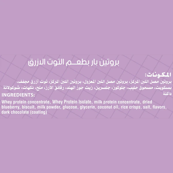 General Ingredients: Whey protein concentrate, Whey Protein Isolate, milk protein concentrate, glucose, glycerin, coconut oil, salt, flavors, dark chocolate (coating). Specific ingredients like dried fruits, nuts, or espresso powder are added depending on the flavor.