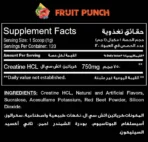 Ingredients: Creatine HCL, Natural and Artificial Flavors, Sucralose, Acesulfame Potassium, Red Beet Powder, Silicon Dioxide.
