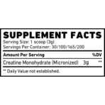 – Amount Per Serving: Creatine Monohydrate (Micronized) 3g