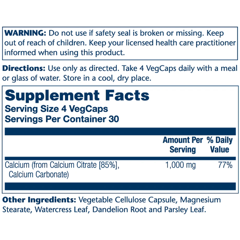 - High Potency Dose: Delivers 1000mg of Calcium per 4-VegCap serving.
