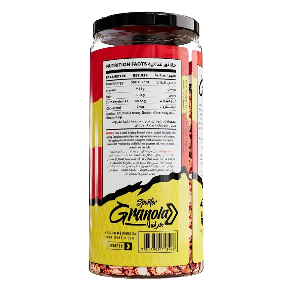 Ingredients: Oats, Dried Strawberry, Strawberry Flavor, Honey, White Chocolate, Orange.