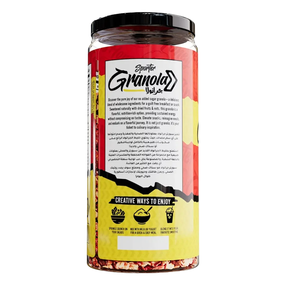 Discover the pure joy of our no added sugar Sporter Granola! This is a delicious blend of wholesome ingredients for a guilt-free breakfast or snack. Sweetened naturally with dried fruits, this granola is a flavorful, nutrient-rich option, providing lasting energy without compromising on taste. It’s not just granola; it’s your ticket to culinary inspiration.