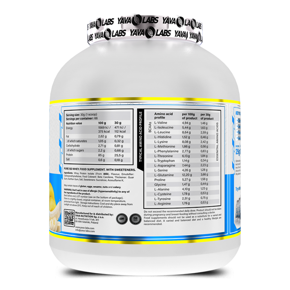Fuel your muscles with the purest protein available with Yava Labs’ Pure ISO Whey. This premium food supplement is formulated with 100% whey protein isolate, providing a fast-absorbing, high-quality protein source to support muscle growth and recovery. It’s the perfect choice for athletes and fitness enthusiasts looking for a clean, lean, and effective protein to supplement their diet.