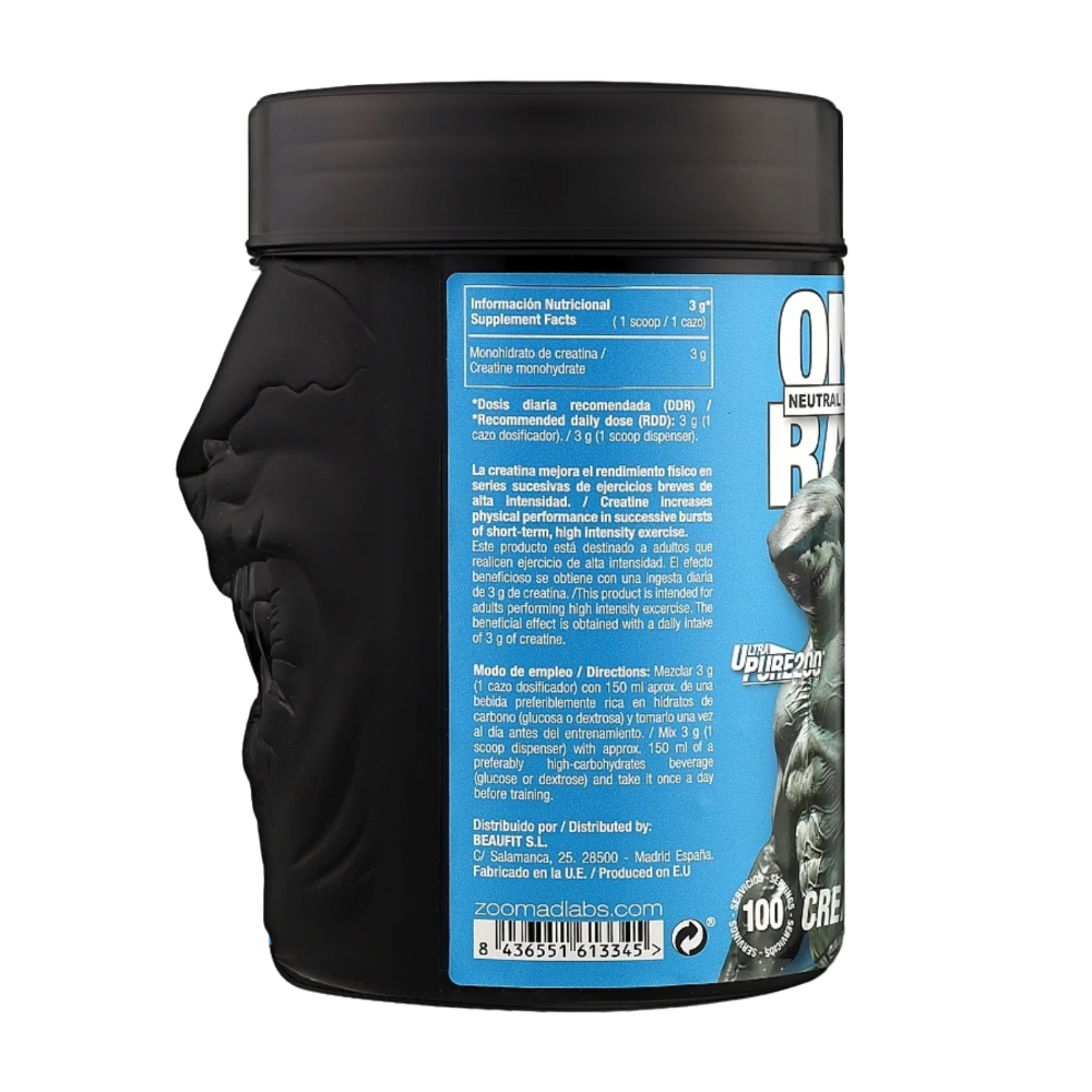 Zoomad Labs One Raw Creatine is a high-quality creatine monohydrate supplement designed to enhance physical performance in successive bursts of short-term, high-intensity exercise. This product is intended for adults performing high-intensity exercise and provides 3g of pure creatine per serving.