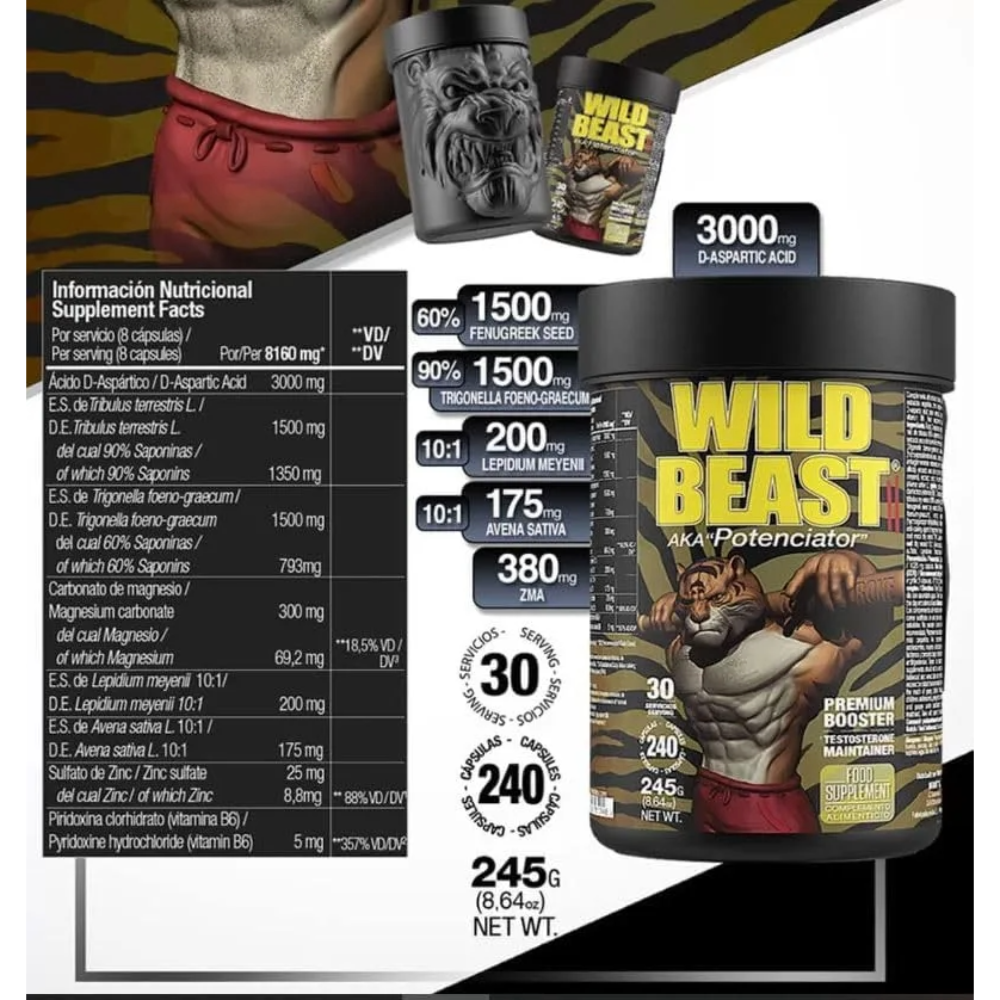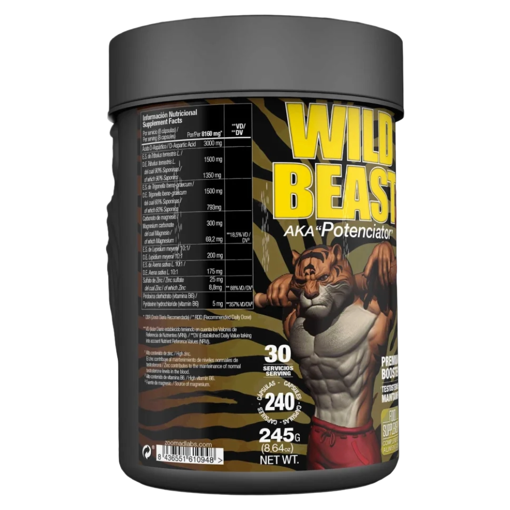 Unleash your inner animal with Zoomad Labs’ Wild Beast, the premium testosterone maintainer and booster also known as “Potenciator”. This food supplement is a powerful complex based on D-Aspartic acid, vegetable extracts, zinc, magnesium, and vitamin B6. It’s designed for the serious athlete looking to support normal testosterone levels, enhance performance, and build a wild physique.